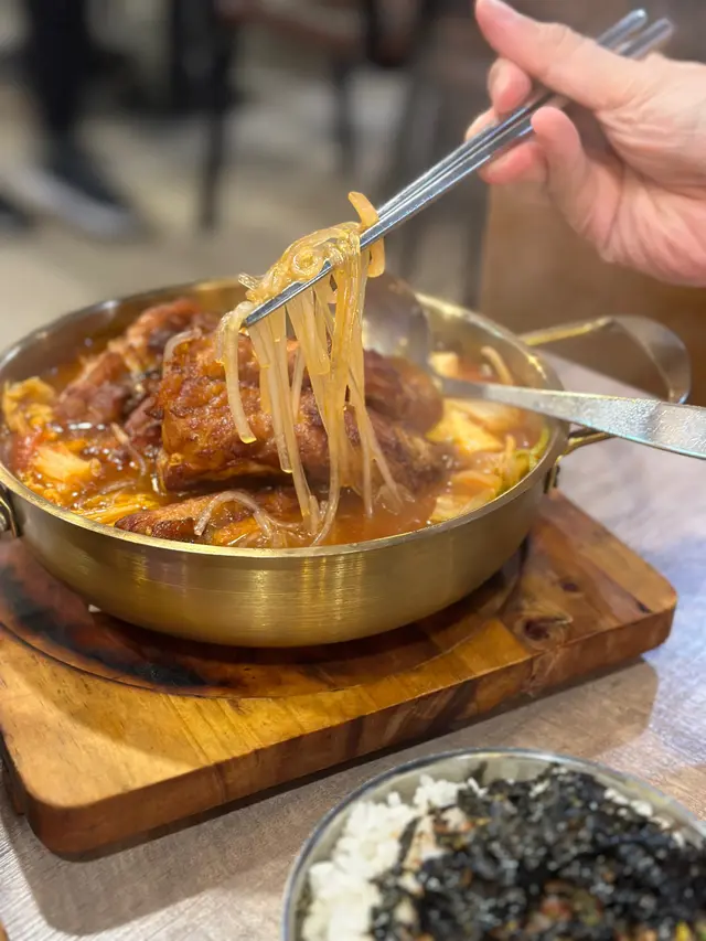 鍾意食韓國嘢的你不要錯過!今次去到將軍澳分店韓閣,冇諗過啲嘢食咁大份仲要幾抵!今次去了晚市。叫了精選客飯套餐!$88一款或者$168兩款餸菜,包飯熱飲和例湯。飯還要配上紫菜!今次叫了鑊仔辣醬炒魷魚配香烤豬腩和辣蕃茄豬仔骨粉絲鍋。分量十足,調味恰當。特別喜歡豬仔骨粉絲,豬仔骨非常腍。去韓國餐廳點可以唔食炸雞,叫了半半雞。烤甜辣芝士炸雞和香蒜蔥燒味。邪惡的芝士炸雞,芝士分量十足!外面脆口,內裏Juicy! 喜歡吃微辣非常推介這個口味!總共叫了三個主菜和一杯飲品,大概$450。以咁嘅份量來講,這個價錢絕對超值!…查看更多