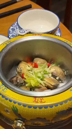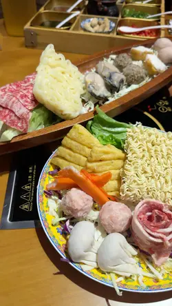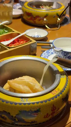 週末去咗北角閑遊,午餐諗住打個邊爐已經夠chill,冇諗過呢間餐廳打卡位超多!呢一間叫做滾得囍宮廷火鍋小炒,除咗啲裝修都係宮廷風,連個鍋同埋配料啲擺盤都係走宮廷風,中午嚟有幾個唔同嘅套餐選擇,可以揀自己嘅湯底,唔使逼住同朋友一樣。配料唔同價錢都會有少少分別,我哋兩個人就一人叫咗兩份唔同嘅,一個套餐係鼎,另一個係御。先講湯底,我哋分別揀咗順治特色卜卜蜆鍋同埋康熙花膠雞湯鍋。兩個湯底都好足料,味道亦都濃,卜卜蜆鍋有滿滿嘅蜆,胡椒蘿蔔味都好出亦都好鮮甜。至於個花膠雞湯我就唔使講啦,完整嘅花膠同埋雞件,熬出嚟嘅湯底好香,兩個湯底味道已經做得好,仲要有得打卡,一開始出場加湯嘅時候仲要出晒煙,好似仙境咁樣。至於配料,先講第一個套餐御,呢個套餐有A5黑毛和牛、手打黑松露惹菌鮮蝦丸、紫皇蟹粉豚肉餃、日本廣島蠔、百花釀豆腐同埋菜,麵食揀咗日本稻庭烏冬。而另一個套餐鼎,就有伊比利亞豬肉片、手打紫薯流心豬肉丸、芋泥豬肉餃、日本蟹柳、風琴豆腐同埋菜,麵食就揀咗出前一丁,兩個套餐嘅嘢飲都係揀咗竹蔗茅根。見到啲配料已經覺得好特別,好多都係自家製嘅感覺,唔係啲普通配料,已經攞咗好多印象分,食落仲要係好食嘅,唔俾高分都唔得,和牛同埋豬肉片好高質,堅係日本和牛同埋伊比利亞豬肉片,肉味好濃!兩個丸都好正,一個滿滿嘅黑松露味,而另一個除咗手打嘅口感之外,紫薯流心配豬肉好夾,兩個肉餃都係第一次食,比較欣賞係豚肉餃,因為好鍾意食啲芋泥,至於廣島蠔,另一半不嬲都唔鍾意食蠔,因為怕會腥,但係呢個蠔好鮮甜,另一半都食得到,百花釀豆腐嘅墨魚滑亦都好推介,最後兩個麵食吸晒湯底嘅味道,埋尾一流,好滿足。特別想講係,佢哋嘅服務態度好好,非常值得稱讚,一開始拎九宮格嘅醬料出嚟嘅時候,會介紹啲醬料,之後拎個湯底出嚟同埋加湯嘅時候,不斷小心前小心後,好細心,抵讚。…查看更多