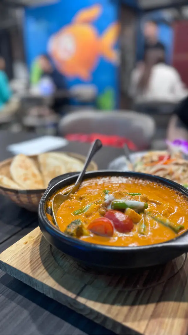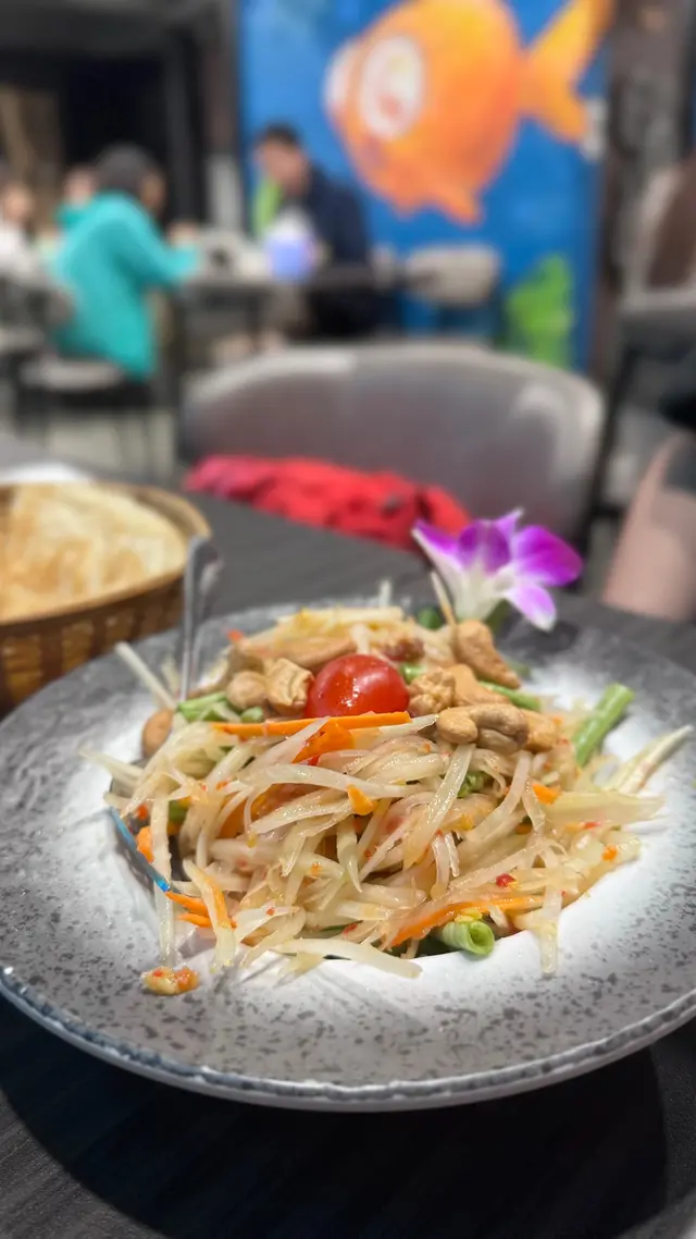 估唔到尖沙咀都有間好食嘅泰菜😋位置都算方便 地方幾大幾整潔.首先叫咗個青木瓜沙律🥗相比食過嘅同款菜式 呢度嘅調味重啲 辣啲又酸啲 好惹味開胃👍🏻.然後係雞肉紅咖喱🥘加配薄餅🫓咖喱嘅椰味濃郁 冇乜辣味 雞肉唔錯 仲加咗好多蔬菜 其中有茄子 唔係軟軟爛爛果種 食落幾特別另外 咖喱配薄餅好好食 佢啲薄餅好香脆 掛住傾偈 食到最後都仲好脆口 出色🫡 .再嚟係蛋包炒金邊粉🍳蛋包冇乜特別 相信係打卡比較好睇 都可能因為咁 所以份量都幾少味道同一般泰菜差唔多 冇乜驚喜.仲叫咗杯青檸茶有少少似濃縮檸汁咁 唔太推薦.總括嚟講都幾滿意坐得幾舒服 適合聚會個人推薦青木瓜沙律😁…查看更多