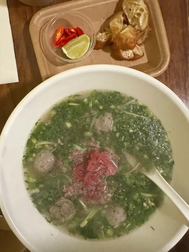又係一年一度同個fd子一齊去睇流年既時候啦,順便去旺角食好西。Fd子話之前食過呢間越南餐廳,好食,想食多次,好彩今日都唔係太多人排隊,10分鐘左右就入得。間鋪頭細細間,都有啲迫迫地。叫左店員介紹既2號招牌牛柳牛丸粉,話全香港最好食😋湯底ok, 多䓤多芫荽,有2粒切開一半的骰既牛丸仔,食落有口感彈同有油脂汁。河粉幼身,ok。牛柳碎,容易啲由生浸湯變熟。總括嚟講都OK。下次想試吓個蟹肉檬粉。佢都幾得意,好似白粥配油炸鬼咁呢個都跟咗個油炸鬼。小脆,仲有檸檬同辣椒仔。牛油雞翼,(蒜蓉蜜糖雞翼?)比較似家庭餸,同之前其他越南店舖食開嘅牛油雞翼好唔同,呢隻係蜜糖蒜蓉粒。嗰啲蒜蓉粒非常黐牙。唔係唔好食,正常但唔牛油。鮮蝦米卷呢個ok ,食落幾fresh 。金桔梳打(無影到相) $30我叫左微甜,呢個幾好飲!因為夠氣,食到最後飲都仲有氣。fresh最後埋單送咗個越南甜品,個哥仔應該係老細,話尋日喺越南新鮮人手handcarry 運返嚟。唔係咁甜,煙煙韌韌中間個綠豆餡都好食,佢成嚿綠色應該係斑斕啩,但唔係好食到斑斕味。我朋友話比起佢第一次食嘅時候,冇咁驚艷,話之前有個奧巴馬湯粉,好好食,而家無左。但今次唔使排好耐隊之下,有食到都好開心。…查看更多