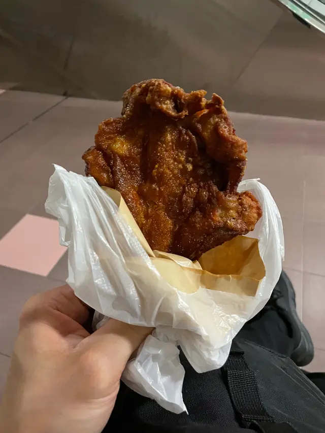 之前見到有不少報道,說得天花亂墜,好不威風。今天晚上有車剛好到了堅尼地城,經過此店,心血來潮,也好久沒吃過炸雞髀了。店是小店,店主年輕有禮,兩個人做,小食十款八款,看似都有心做。生炸雞髀,$35,說貴不貴,確也不便宜。晚上六點左右,客三兩個,生炸要等,是常識吧。等了十分鐘就有了,到附近體育館吃,步行5分鐘左右。體積不過不失,目測其實估到有點乾身。有一說一,成隻脾就表面有味而已,個心無味,唔知係無醃定刻意唔做咁夠味?你問我,脆又唔係好脆,汁又唔係話好有汁,味又唔係話好夠味,想點SIZE 又唔大脾,想點😅?$35一隻咁嘅質素,對我嚟講,都幾有落差。有興趣自己試吓。我就無下次啦。…查看更多