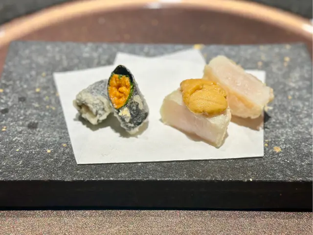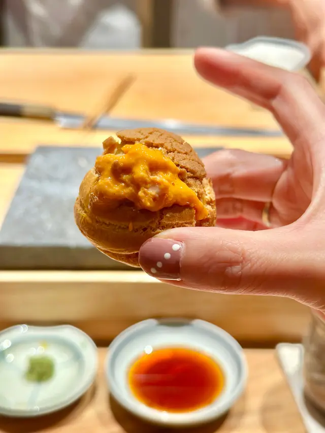 第一次黎到呢度,好驚喜🩵環境好好,好舒服,坐位一啲都唔迫,仲有個打卡位,慶祝一流既地方💜呢餐食左好多唔同既海膽,有隻叫地膽既海膽,第一次食呢個味道,好濃味,同白海膽、紫海膽、馬糞海膽既味道非常唔一樣,佢偏黏口,有啲咸香味❤️除左食材新鮮,仲好迎合我既味道,知道我唔鐵意食生魚,轉哂蝦、貝類sushi比我🥰最後仲有個驚喜生日大波波😝 🎈 喺度慶生係一流既選擇🫶🏻呢個海膽蟹肉蛋所用既恐龍蛋杯,價值不菲,又靚又有儀式感🩵粒貝用串串上,爽口到不得了🩵帶子海膽,帶子又厚又大粒,配埋海膽鮮味X 2❤️每個海膽都係大大舊,一啲都唔吝嗇💜呢個瀨尿蝦海膽,世一🩷隻瀨尿蝦勁大隻!配海膽,雙重味道,兩個層次都食到💙松茸湯🩷個杯都可愛過人☺️…查看更多
