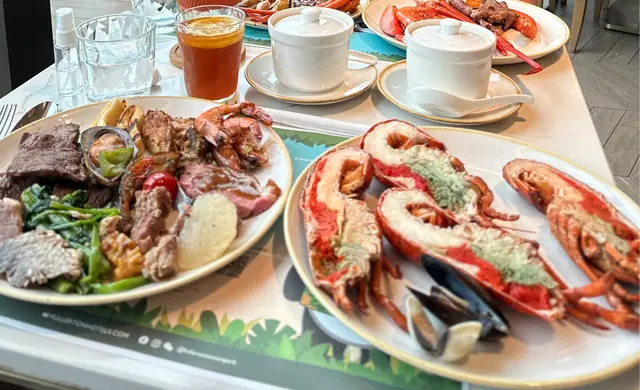 連龍蝦都麻麻哋,好硬無乜鮮味,拆肉放落南瓜湯食😅甜品總括一般,斑斕蛋糕OK,後面啡色果件好食。芝士蛋糕好難食。冇咗熊貓同海洋主題嘅甜品,好失望!訂位時有表示慶祝生日,職員主動送上生日甜品👍🏻(兩款蛋糕係同出面自己拎嘅一樣。)價錢唔算平,自助晚餐,旅遊局買一送一優惠,埋單要$958/2位。食物質素、環境嚟講,非常唔值!如食物質素及價錢無改善,相信唔會再幫襯。
