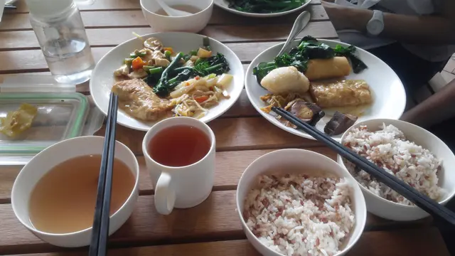 是日行經中環,到訪一間一早在待吃名單的餐廳試一試它的兩餸飯兩餸飯($40)連任食飯/炒麵/炒米粉/湯這間餐廳每日有十多個素菜供顧客選擇,最少選擇一個餸,價錢由三十多元起這次選擇了豆角菜甫炒滑蛋和紅燒時菜豆腐豆角菜甫炒滑蛋,蛋滑而不老,配上豆角及菜甫的爽口,整體十分有層次;紅燒時菜豆腐,豆腐用上炸豆腐,以紅燒煮法味道十分濃郁蛋滑而不老,配上豆角及菜甫的爽口,整體十分有層次,十分下飯場內自己去裝飯/炒麵/炒米粉,本人屮小淺嚐了一些炒麵,味道不俗,十分適合大胃口的人士至於素湯味道尚可,十分清淡整體而言,性價比十分高!…查看更多