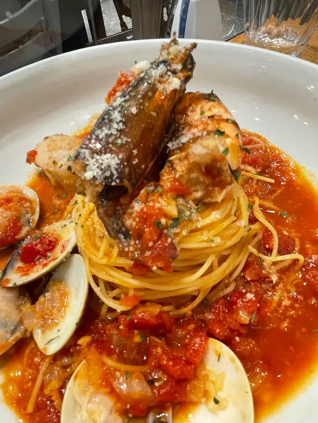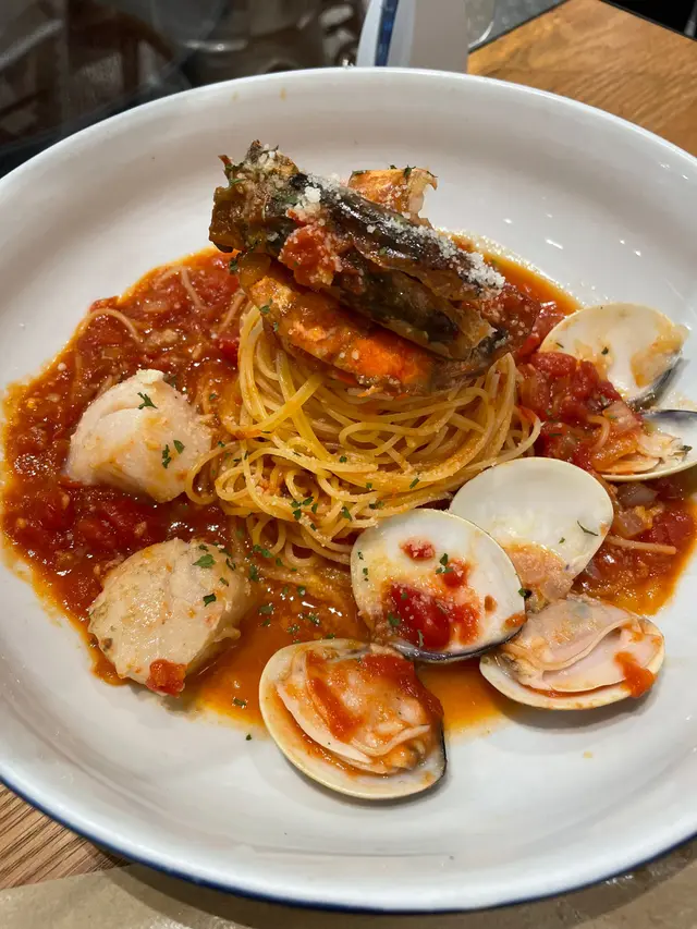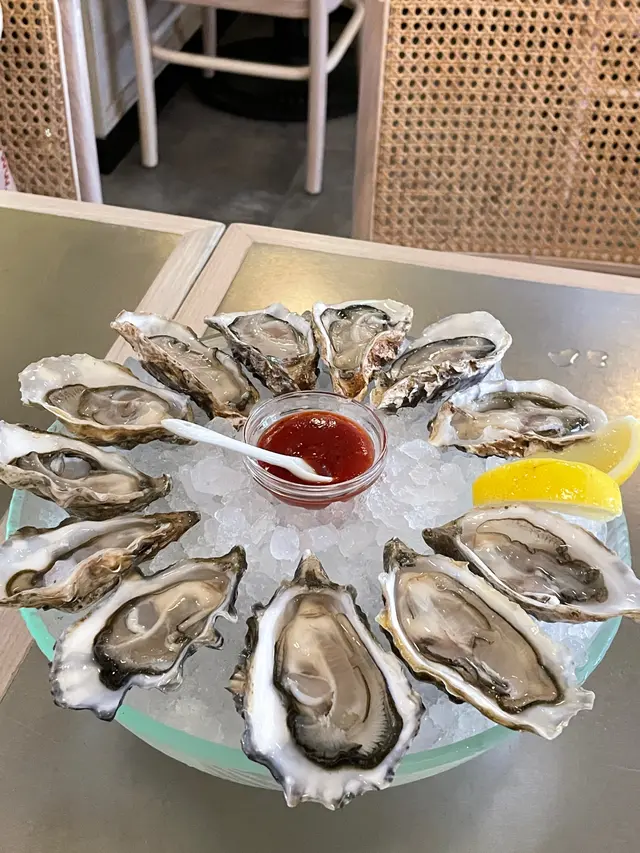幾年前已經食過蠔站,咁多年嚟都冇加過價,都有$10蠔。今次係愛爾蘭生蠔,叫咗一打過吓癮。好甜冇腥味,不過有肥有瘦,但都叫過到癮。主菜叫咗鹹蛋軟殻麵,鹹蛋有油香,落得好重手,啲麵索哂鹹蛋碎!好有驚喜!!會encore呢個麵,軟殼蟹都好脆,有少少膏另一個主菜係冬蔭公天使麵,泰式風味嘅天使麵第一次試。青口冇雪味,蝦一般冇特別,但天使麵食到有香料味。幾特別。不過如果二揀一會揀返鹹蛋麵。餐廳員工好nice,有禮貌,整體體驗好舒服。…查看更多
