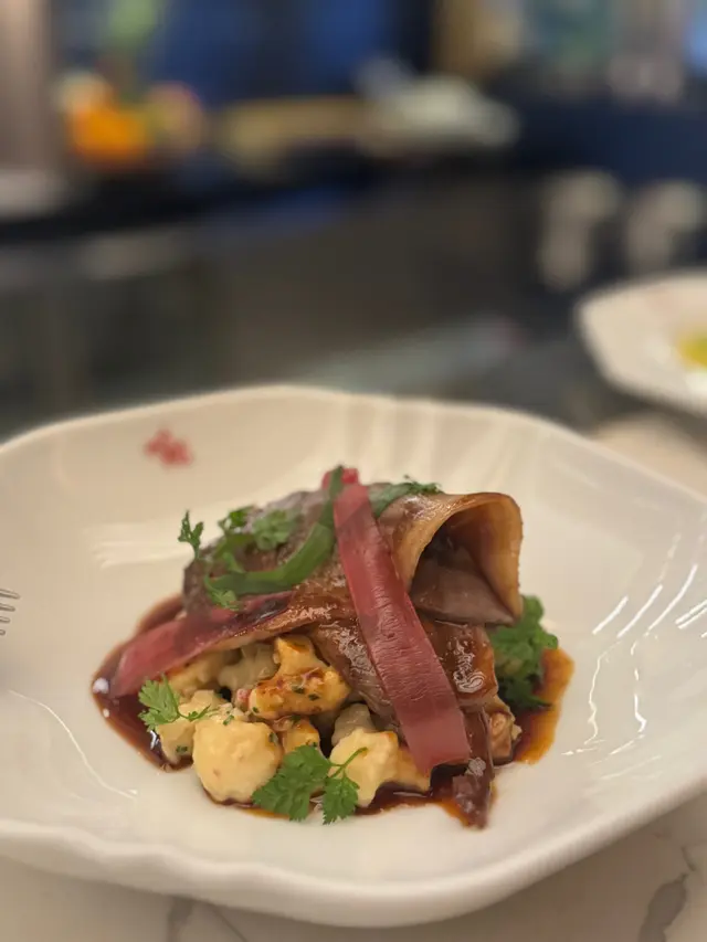 隱身中環的 Lala Hong Kong,由前 Louise 米芝蓮廚師主理,將法式底蘊以更輕盈的手法呈現。$888 的 sharing menu,以細膩工序與平衡感見功夫,每道菜都展現主廚對食材層次的拿捏。Seriole|油甘魚刺身清雅開場。油甘魚肉質滑潤,dill oil的草本香氣滲入脂香之中,既清新又不搶味。是一道極具節奏感的前奏。Caviar|凍卡佩里尼意粉配昆布、松露與魚子醬冷意粉輕盈細滑,昆布鹽香與松露香氣交疊,魚子醬帶來微鹹鮮味。整體如香氣交響般細膩,節制得恰到好處。Langue de Bœuf|炭烤牛舌配薯仔與煙燻芥末醬炭香撲鼻,牛舌外脆內嫩,油脂被精準鎖住。配上的薯仔與花椰菜平衡了口感層次,煙燻芥末醬為整體添上一抹柔和辛香。Sweetbread & Blue Lobster|藍龍蝦sweetbread配黃酒汁海陸組合以細膩火候見真章——龍蝦鮮甜彈牙,sweetbread千層酥脆。黃酒汁微帶堅果與奶油香,讓兩者完美銜接。Famous Roasted Chicken|香烤雞配越光米飯餐廳的招牌。雞皮金黃酥脆,肉質嫩滑多汁,底下鋪的越光米吸盡雞油與肉汁,是整個菜單最溫暖的一筆。樸實卻令人難忘。Dessert|自家製法式甜點檸檬撻酸度明亮、酥皮輕薄;朱古力蛋糕濃郁卻不甜膩。結尾乾淨俐落,留下淡淡餘韻。整體而言,Lala 並非以張揚取勝,而是以靜謐氣度與細節層次取悅挑剔味蕾。每一道菜都像一句低語——含蓄卻深刻。…查看更多