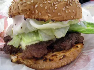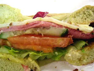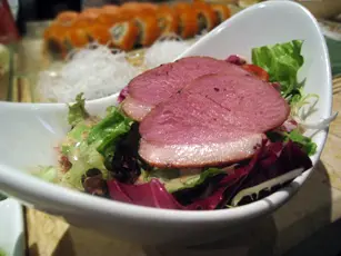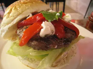 辦完要事後,開始餓了。結果特地走到此店,因上班地點不順路,趁機會用它的free cobb salad coupon。今早吃的lamb kebab令我掛著土耳其kebab,結果叫了turkish lamb burger with tzatziki和cobb salad。 Cobb salad本來有我不喜歡的blue cheese和blue cheese dressing,店長特別幫我在salad兩邊分別加了vinaigrette dressing和balsamic dressing讓我兩種也試過夠。沙律裏除了必有的生菜,還有grilled chicken breast、牛油果、甘甜的beetroot及炸煙肉。雞胸肉竟然不鞋身,剛熟且鹹度適中。牛油果也是熟得剛好,很香滑,沒有未熟透的牛油果的青味和硬身的咬口。炸煙肉雖不夠cripsy,但炸過的始終會香口。Dressing方面vinaigrette dressing比balsamic dressing遜色,因它不太夠香草味和橄欖油而令dressing太酸。Balsamic dressing的油和醋比例較平衡,富有葡萄香和橄欖油香。Lamb burger with tzatziki就是有feta cheese的lamb patty,另有生菜番茄紅洋蔥,飽上也塗有tzatziki(有蒜頭、青瓜乳酪等等的版本,這裏是混了薄荷葉碎的特濃原味乳酪)。Feta cheese奶味不算太重,微鹹,配這飽的lamb patty不錯。但塊lamb patty過實,咬不開,切開也頗費力,幸好羊肉味濃,令我覺得尚可接受。紅燈籠椒沒苦澀味; Tzatziki吃得到薄荷香,乳酪酸味不淡不過重,連lamb patty吃真不錯,是我一向吃lamb kebab的配料首選。清掉一大碟沙律和burger,十分飽。單計lamb burger的話埋單$53,超滿足。…查看更多
