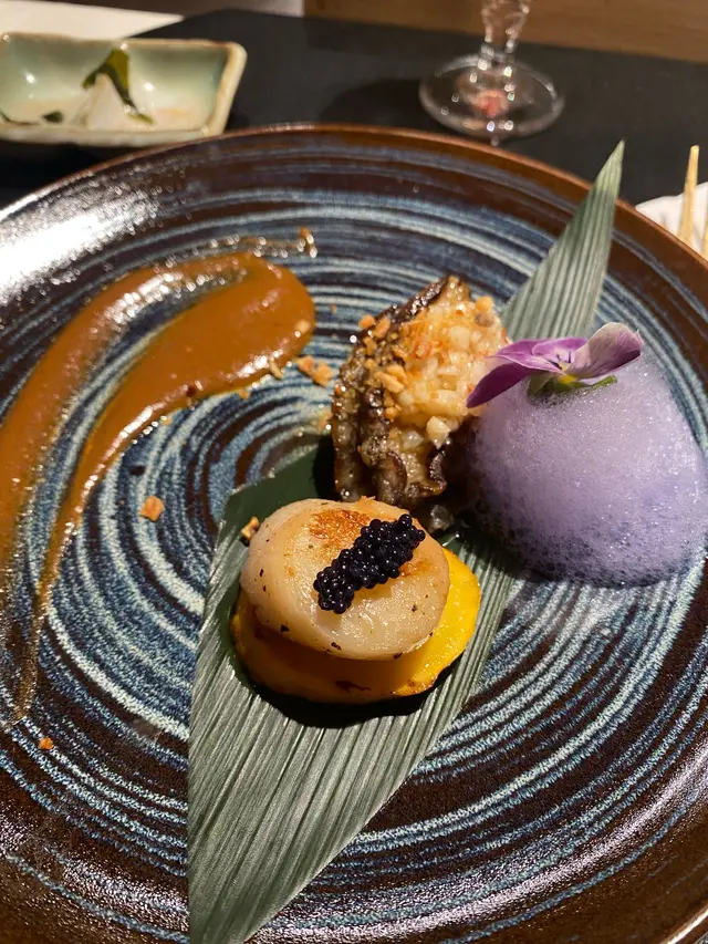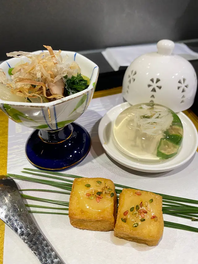 前菜:日本串茄精緻的開場小品,串茄內裡軟糯香甜,擺盤典雅,體現了懷石料理對於季節感的講究。一品:使用香煎金豪做的茶碗蒸創新演繹的茶碗蒸,金豪魚的香煎增添了層次感。蒸蛋質地如絲綢般滑嫩,金豪魚的鮮美完全融入其中。蛋液綿密細緻,入口即化,魚香與蛋香的結合令人驚艷,展現了廚師對火候的精準掌控。二品:深海池魚刺身配博多蔥酸汁取自深海的池魚肉質緊實,透明度高,展現出極致的新鮮度。搭配的博多蔥酸汁清新爽口,蔥的辛香與酸汁的清爽相得益彰,提升了池魚的鮮甜。擺盤如同水墨畫般優雅。三品:香煎吞拿魚下巴油脂豐富的吞拿魚下巴經過完美煎製,外皮金黃酥脆,內裡依然保持多汁。魚肉與骨邊的膠質完美融合,每一口都能品嚐到豐富的層次,展現了簡單烹調方式下的極致美味。四品:十勝和牛配大根來自北海道十勝的高級和牛,油花分布均勻,入口即化。大根經過細火慢煮,完美吸收了和牛的精華,清甜中帶著肉的鮮美。和牛的香氣與大根的清爽形成絕妙平衡。五品:木糠魚天婦羅外皮金黃酥脆,內裡鮮嫩多汁。麵衣輕薄,完美襯托出木糠魚的鮮美。炸製技法精湛,既保持了魚肉的嫩滑,又讓外皮達到理想的酥脆度。六品:秋葵天婦羅秋葵的爽滑與天婦羅的酥脆完美結合,保留了蔬菜的鮮綠與爽脆。麵衣輕盈,不失秋葵本身的自然鮮甜,展現了對食材的尊重。七品:南瓜天婦羅南瓜的自然甜味在天婦羅衣的包裹下更顯突出。外酥內軟,口感層次分明,南瓜的香甜與麵衣的酥脆形成美妙的平衡。甜品:杏仁咖啡雪糕精緻的收尾之作,杏仁的香醇與咖啡的苦韻完美融合。質地綿密順滑,入口即化,讓人回味無窮。溫和的甜度恰到好處,既不會喧賓奪主,又能畫下完美的句點。整體而言,這套料理完美展現了四季更迭的意境,從食材選擇到烹調技法都極致考究,每道菜都充分體現了對食材的尊重與對細節的追求。…查看更多