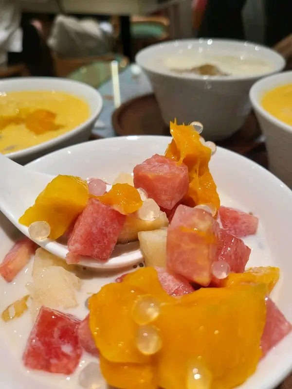 今日到沙田河畔花園同老友相聚, 見到有間新開甜品店-嘆甜品.即刻 入去試下, 小店以貓貓佈置同擺滿公仔超可愛, 店員親切有禮。 餐牌嘢食多選擇, 除咗甜品外仲有好多小食, 價錢仲好吸引添。芒果飄雪:雪花冰細緻柔滑,新鮮芒果果肉鮮甜多汁仲大大粒, 外面天氣炎熱食碗雪花冰透心涼。宇治抹茶拼烏龍茶麻薯窩夫:窩夫即叫即制外脆內軟, 兩款茶香口味各有特色, 加入麻薯煙煙靭靭口感有層次,雪糕球多款味道選擇。 椰皇芒果小丸子:呢款甜品擺盤精緻, 原隻椰皇, 椰皇奶凍椰香清甜加上芒果小丸子完美配搭,芒果肉大大粒 小丸子煙煙靭靭,口感豐富。Bbq蜜糖雞翼:雞翼肉質鮮嫩經過烤焗外皮微微焦香,內裏保持豐富肉汁, 沾上蜜糖香甜美味。花之丸鹽酥雞拼盤:鹽酥雞金黃酥脆肉質嫩滑,花之丸味道鮮香,調味恰到好處。…查看更多