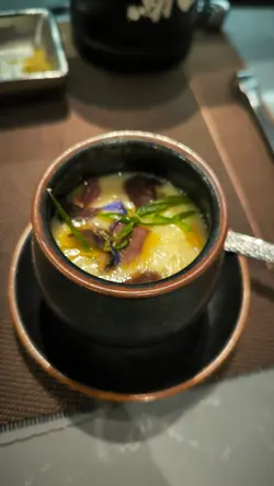 近排股票賺咗少少,梗係要獎勵下自己啦,特登約埋個靚女老友去食餐好ge,朋友推介,第一次食廚師發板,真係好多功夫,好有心思,好值得去!食咗十幾道菜。正呀!1.沖繩水雲配粟米,水雲酸酸甜甜好爽口,粟米青甜!2.北海道鮮帶子配純菜,帶子好先甜嫩口,用個好靚嘅小酒杯載住,有feel!3.秋刀魚刺身,第一次聽第一次食,夠鮮甜,魚油香好突出,入口滑溜。4.仙鳳趾生蠔刺身夠肥嫩,海水鮮味濃,入口爆汁,蘸少少鮮甜直透喉!5.九州地金目魚肉嫩到滑口,帶淡淡甘香,刺身食落鮮甜夠味,齒頰留香好正!6.慢煮安康魚魚肝配薯乾片,安康魚肝慢煮後夠油潤,甘香濃郁,搭薯乾片鹹香,一口落好過癮!7.磯煮鮑魚夠鮮味,肉厚彈牙,口感煙韌,越食越有滋味!8.北海道野生拖羅油潤甘香,夾紫菜脆口,入口即化,鮮甜超過癮!9.五款壽司,蜜柑鯛、深海池魚、赤血引、赤身醬油漬和白海膽,全部都好新鮮好精緻。10.三十六種魚熬七小時湯,鮮濃到黏唇,入口滿是海味,超正!…查看更多